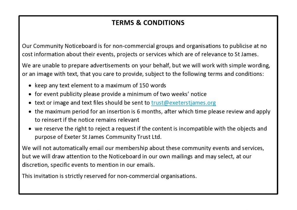 Community Noticeboard Community Noticeboard Please refer to terms and conditions at the foot of the page